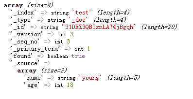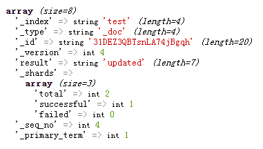 $res = $esSer->updateDoc('31DEZ3QBTsnLA74jBgqh', ['age' => 20]);
