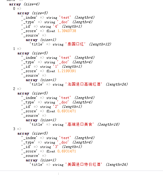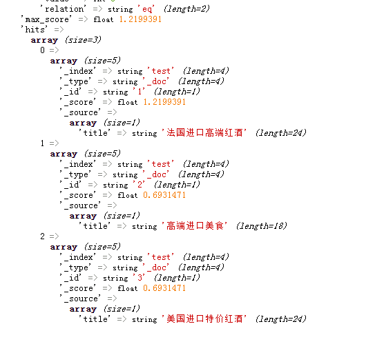 这时候再搜索“进口红酒”,就变成了 ik_max_word 模式去搜索